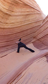 Stanite u zvezdu (rastavite noge tako da su vam stopala direktno ispod vrhova prstiju na rukama). Okrenite levu nogu na unutra za otprilike 15 stepeni i svoju desnu nogu pod uglom od 90 stepeni. Bez naginjanja unapred savite desno koleno tako da bude direktno iznad skočnog zgloba. Držite ruke pararelno sa tlom i gledajte preko desne ruke. Dok dišete, pratite promene u kvalitetu disanja, njegovoj dubini i brzini. Kako nadražaji počnu da se pojavljuju u prednjem delu butineili ramenima, pratite kako um reaguje. Da li osećate averziju prema napetosti koja prati nadražaje? Pratite kako reagujete ukoliko ostanete fokusirani na disanje dok se oslobađate tenzije. Obratite pažnju namisli koje nastaju kao odgovor na to što se dešava i izaberite da samo osluškujete bez da se vežete za neku od njih. Umesto da osećaje pretvarate u entitete sa kojima treba da se borite, osvestite ih svojom pažnjom. Uočite, ukoliko možete, njihovu bezličnu prirodu navike. Pošto uradite vežbu sa obe strane, vratite se u planinu i skenirajte celo telo , ostajući otvoreni za sve što se pojavi.